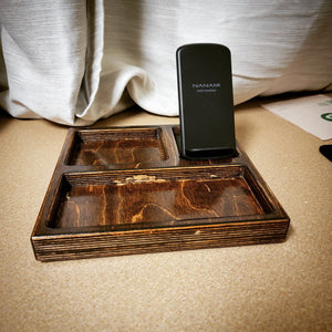 In this final phase, I made another side table and a coffee table. The side table is nearly identical to the first one. The coffee table is shorter than the two side tables and the top is larger at roughly 2′ by 4′.