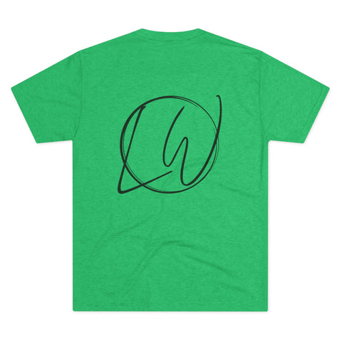 This soft tri‑blend tee carries a quiet, thoughtful vibe — minimal lines, gentle curves, and a hand‑drawn mark that reads like a private signature. It settles lightly on the shoulders and moves with you; the fabric’s drape feels lived‑in from the first wear. Wear it while sketching plans in a sunlit studio, hiking a mossy trail, or layering under a flannel for slow weekend mornings. The subtle front text and the larger back emblem create a calm, refined presence without shouting — a daily reminder of craft, care, and the small work of shaping things by hand.